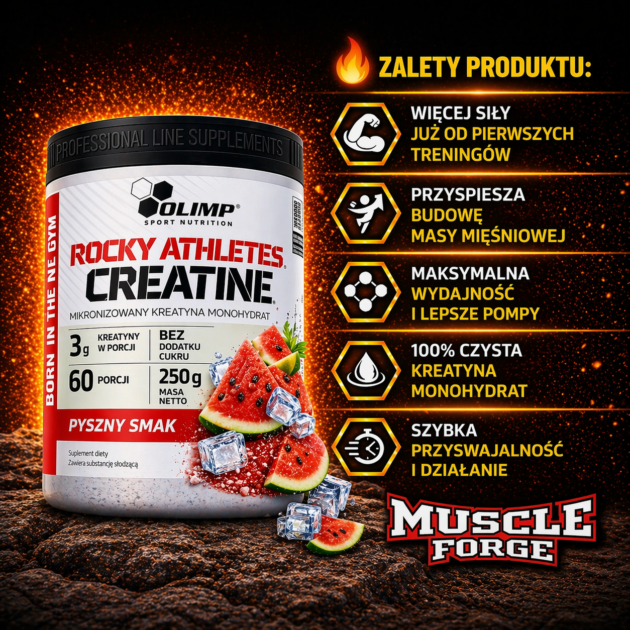 Rocky Athletes Creatine to zaawansowany suplement w proszku zawierający mikronizowany monohydrat kreatyny wzbogacony o magnez oraz witaminę B6 💪