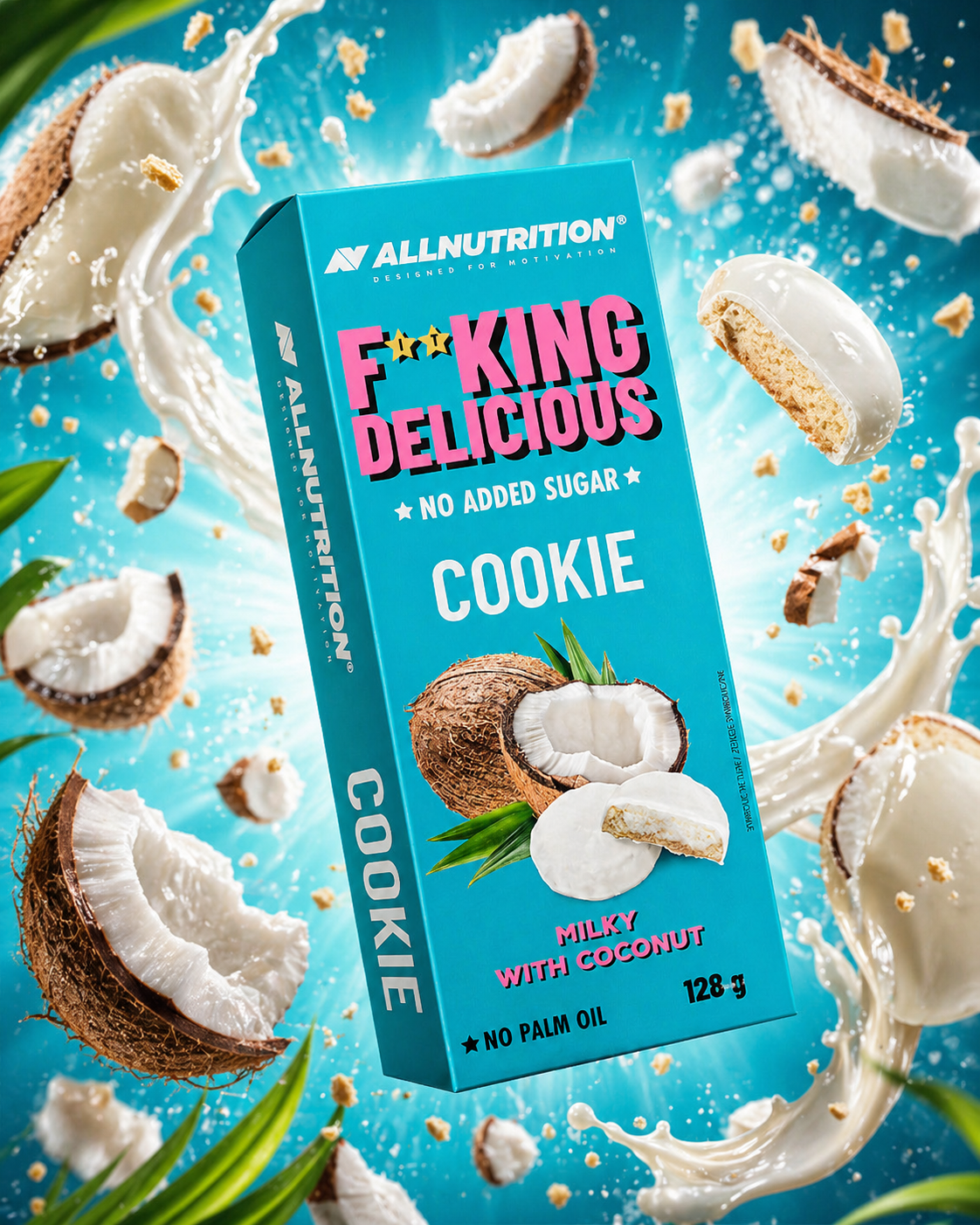 ALLNUTRITION F**KING DELICIOUS COOKIE is een knapperige koek met een romige crèmevulling en een zachte melkcoating, zonder toegevoegde suikers 💊