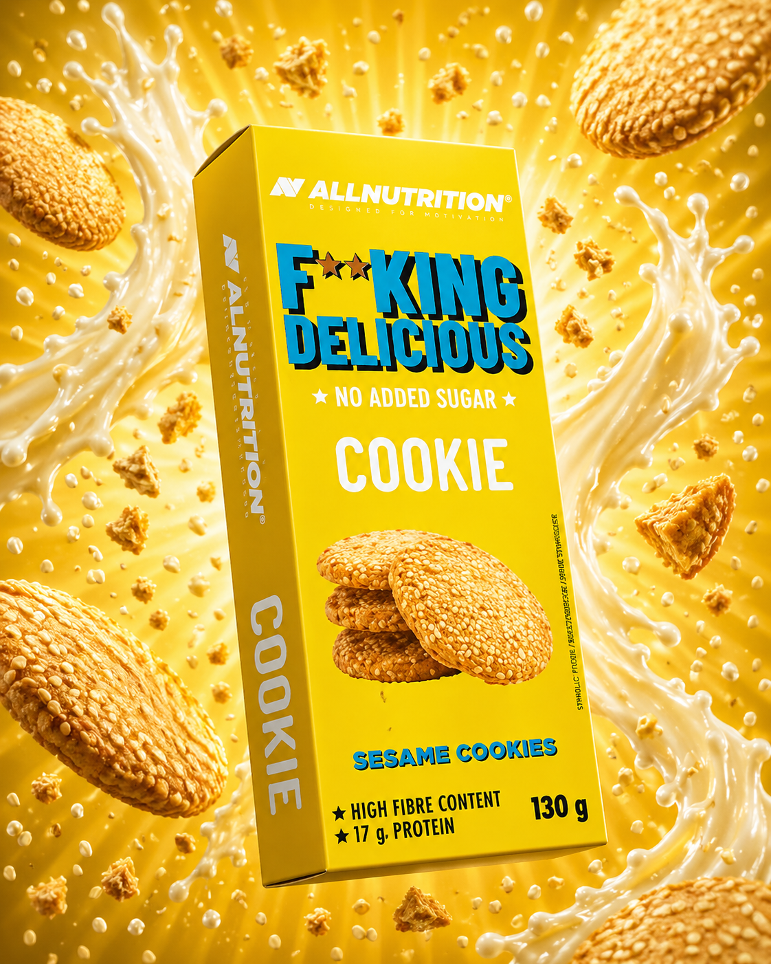 ALLNUTRITION F**KING DELICIOUS COOKIE SESAME COOKIE zijn knapperige koekjes met een hoog gehalte aan sesamzaden, zonder toegevoegde suikers en gezoet met maltitolen 💊
